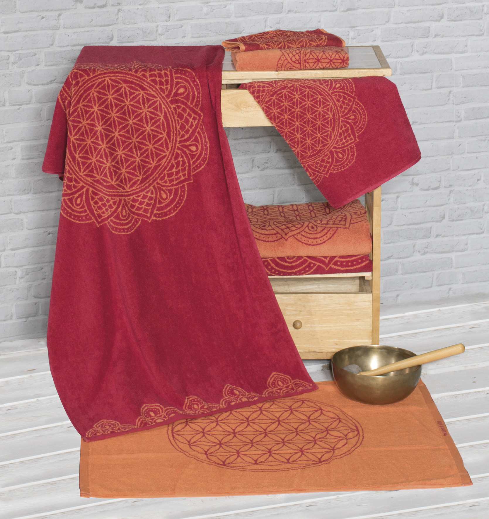 Unser spezielles Herstellungsverfahren, das auf den Prinzipien der Bio-Energetik und des Feng Shui aufbaut, wird gleich zu Beginn des Produktionsprozesses angewendet. Die Bio-Energetik wird z.B. durch Einprägung mikrofeiner Edelsteine in die Bio-Baumwolle eingebracht. Zusammen mit der Grundenergetisierung fördern sie innere Harmonie und Entspannung. Motive, wie die ‚Blume des Lebens‘ oder Affirmationen wirken sich energetisch ebenso positiv aus. Die Farben sind fein nach der Ayurveda-Typlehre abgestimmt, wodurch sie so gut wie jedem stehen.